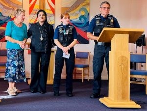Her ingenuity saw Police Community Support Officers attend Broadway United Church (LEP) to brief the congregation on how to better protect themselves from scams and frauds.