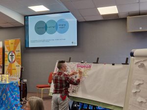 The Revd Dr Robert Pope led attendees in the second Bible study, exploring Deuteronomy 29:2-13 as an “instruction manual”. Moses challenges all Israel to “observe the words of this covenant and perform them, in order that you may find success in everything you do.” Although the choice at the crossroads is less binary, Robert suggested that the critical element is making choices faithfully. From themes of covenant and confession, two key questions emerged: what “word” have we heard, and what “word” are we waiting for?